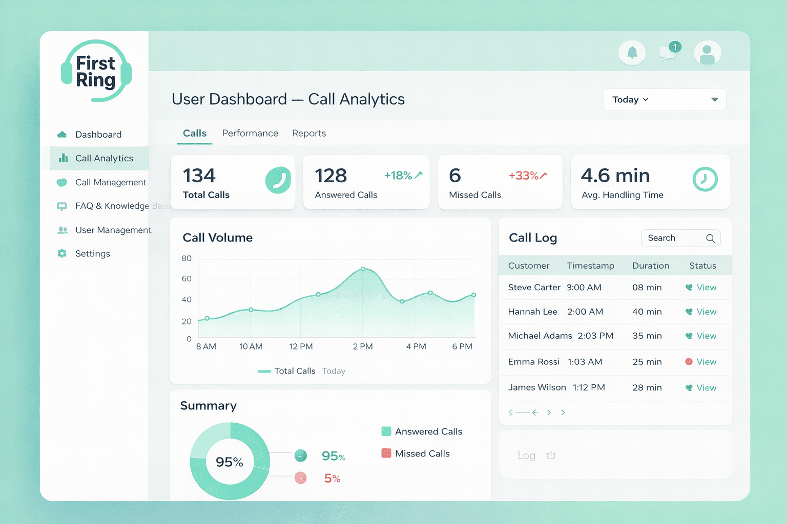 Our goal is to make the User Dashboard not just a control panel, but a true business management tool — simple, powerful, and flexible. With First Ring AI, business owners stay in control while the AI handles customer calls efficiently and professionally.